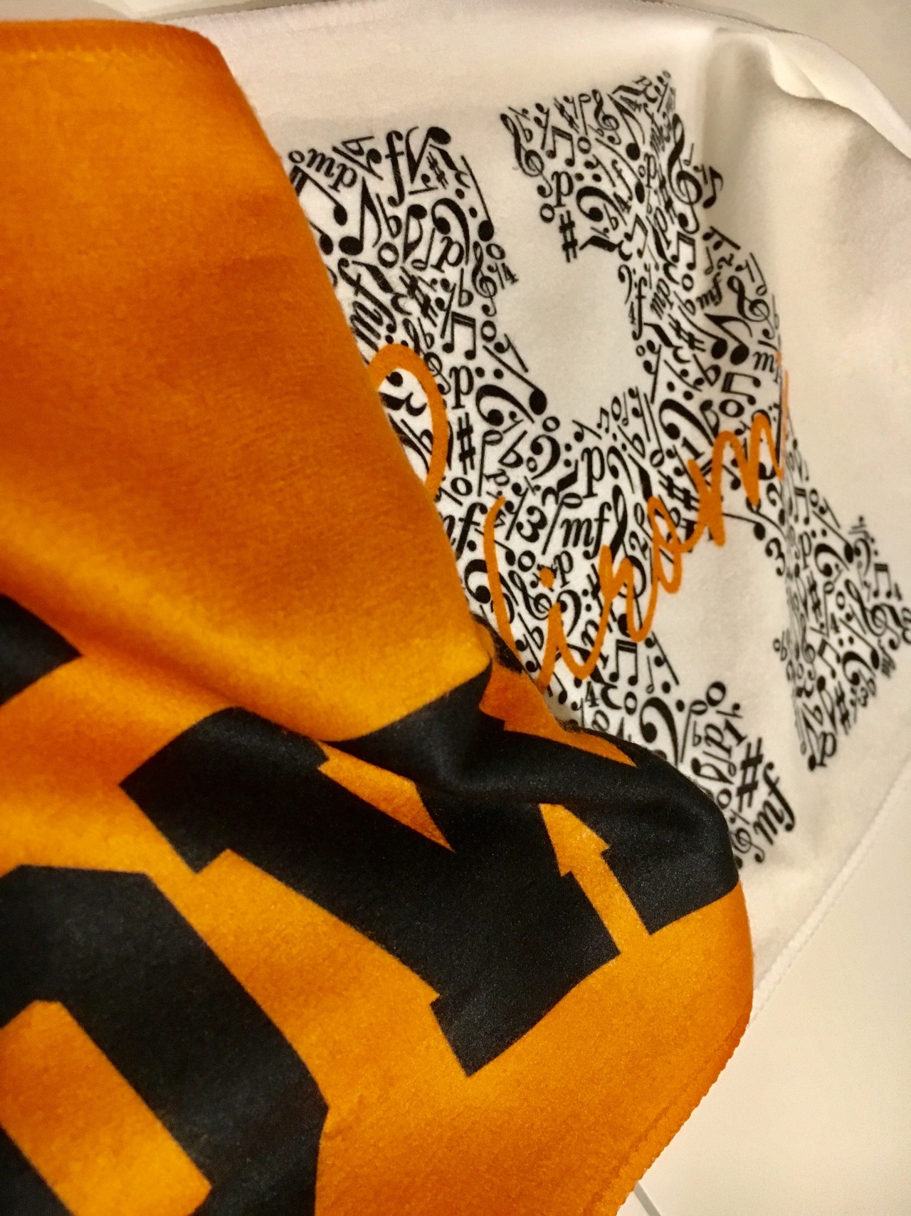 カレッジスポーツチーム風のマフラータオル!生地は薄めのフリース生地のような感触☆直筆サインご希望の方は追加でご購入お願い致します。